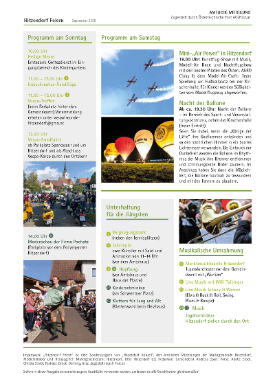 - 14.00 Uhr: Modenschau der Firma Pachatz (Parkplatz vor dem Polizeiposten Hitzendorf)
