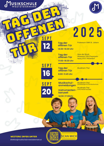 Die Musikschule Weststeiermark lädt herzlich ein, Instrumente auszuprobieren, Lehrer:innen kennenzulernen und Musikluft zu schnuppern!