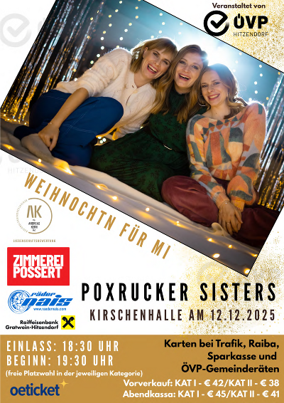 Karten sind bei der Raiffeisenbank Hitzendorf, der Steiermärkischen Sparkasse Hitzendorf, der Trafik Hochegger, den ÖVP Gemeinderäten sowie bei oeticket erhältlich.