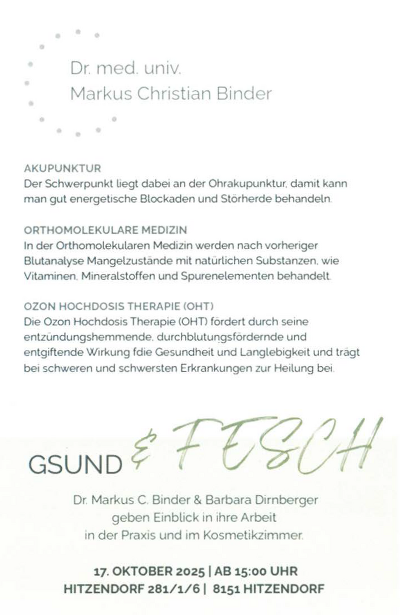 Dr. Markus C. Binder & Barbara Dirnberger geben Einblick in ihre Arbeit in der Praxis und im Kosmetikzimmer.