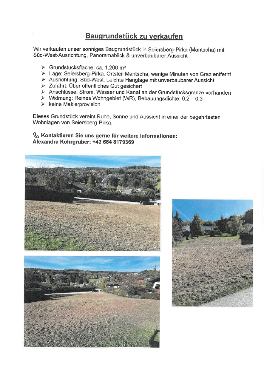 Sonniges Baugrundstück in Seiersberg-Pirka