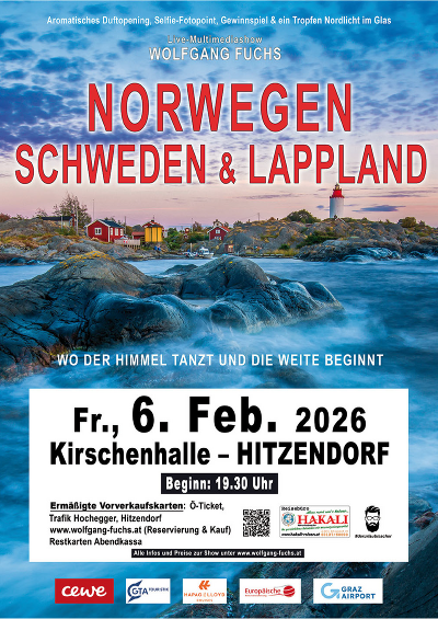In seiner aktuellen Multivision berichtet Wolfgang Fuchs Multivision von herausfordernden Husky Touren, Samen-Begegnungen und nordischen Eigenheiten - eine bildstarke Reise zwischen Natur, Abenteuer und Humor.