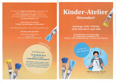 Anmeldung: Irmgard Falk, +43 (650) 5018415, irmgard@falk-maltherapie.at