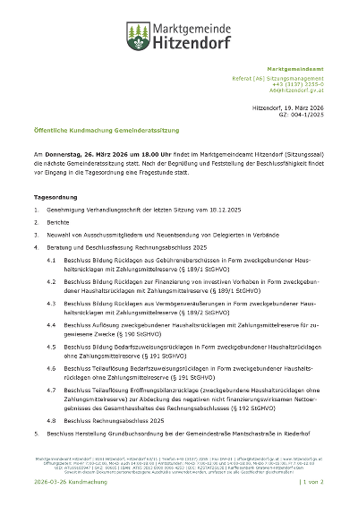 Öffentliche Gemeinderatssitzung