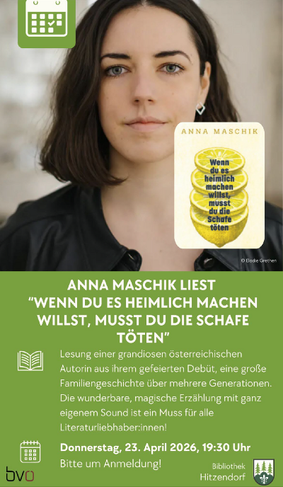 Lesung mit Anna Maschik "Wenn du es heimlich machen willst, musst du die Schafe töten"